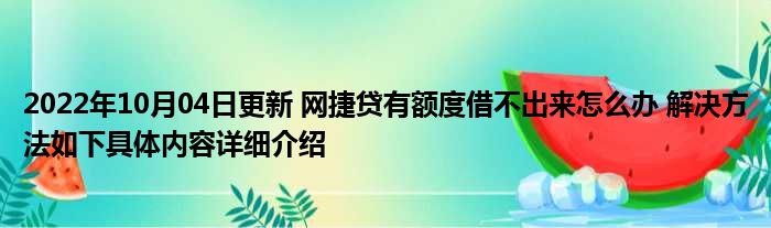 2022年10月04日更新 网捷贷有额度借不出来怎么办 解决方法如下具体内容详细介绍