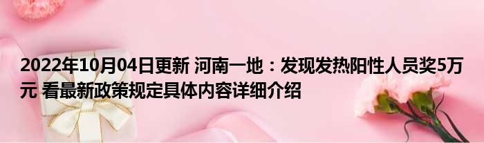 这两天关于2022年10月04日更新 河南一地:发现发热阳性人员奖5万元 看最新政策规定具体内容详细介绍这方面的信息是受到的大家的关注度