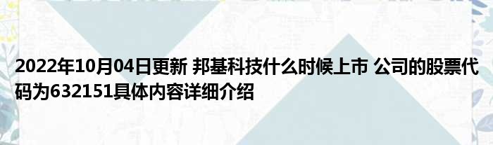 2022年10月04日更新 邦基科技什么时候上市 公司的股票代码为632151具体内容详细介绍