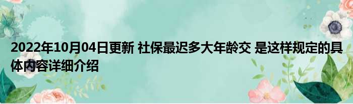 这两天关于2022年10月04日更新 社保最迟多大年龄交 是这样规定的具体内容详细介绍这方面的信息是受到的大家的关注度比较高,很多人也是