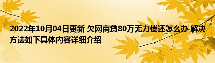 2022年10月04日更新 欠网商贷80万无力偿还怎么办 解决方法如下具体内容详细介绍