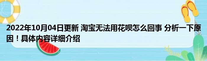 2022年10月04日更新 淘宝无法用花呗怎么回事 分析一下原因!具体内容详细介绍