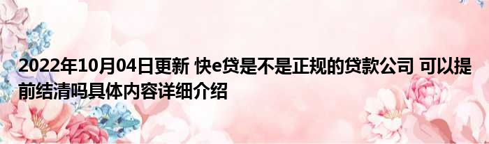 2022年10月04日更新 快e贷是不是正规的贷款公司 可以提前结清吗具体内容详细介绍
