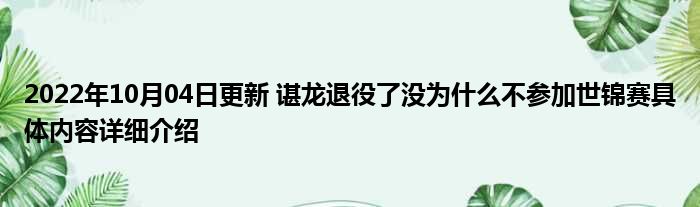 2022年10月04日更新 谌龙退役了没为什么不参加世锦赛具体内容详细介绍