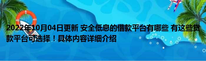 这两天关于2022年10月04日更新 安全低息的借款平台有哪些 有这些贷款平台可选择!具体内容详细介绍这方面的信息是受到的大家的关注度比