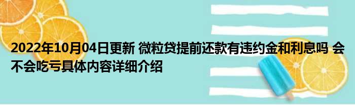 这两天关于2022年10月04日更新 微粒贷提前还款有违约金和利息吗 会不会吃亏具体内容详细介绍这方面的信息是受到的大家的关注度比较高,