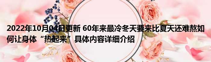 2022年10月04日更新 60年来最冷冬天要来比夏天还难熬如何让身体“热起来”具体内容详细介绍