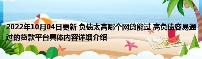 2022年10月04日更新 负债太高哪个网贷能过 高负债容易通过的贷款平台具体内容详细介绍