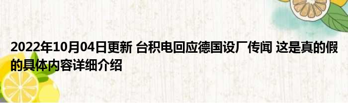 2022年10月04日更新 台积电回应德国设厂传闻 这是真的假的具体内容详细介绍