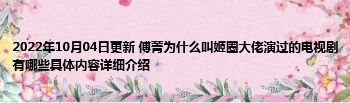 2022年10月04日更新 傅菁为什么叫姬圈大佬演过的电视剧有哪些具体内容详细介绍