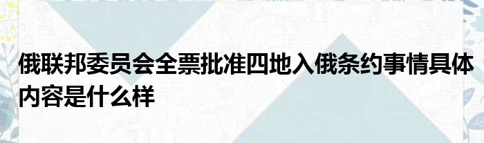 这两天关于俄联邦委员会全票批准四地入俄条约事情具体内容是什么样这方面的信息是受到的大家的关注度比较高,很多人也是想要明白俄联邦委员会全票批准四地入俄条约事情具体内容是什么样具体的详情,那么小编今天也是特地在网上收集了一些关于这方面的信息内容来分享给大家,大家感兴趣的话可以接着看下面的文章。