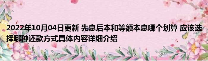 2022年10月04日更新 先息后本和等额本息哪个划算 应该选择哪种还款方式具体内容详细介绍
