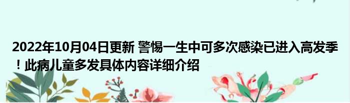 2022年10月04日更新 警惕一生中可多次感染已进入高发季!此病儿童多发具体内容详细介绍