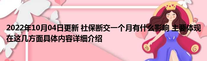 这两天关于2022年10月04日更新 社保断交一个月有什么影响 主要体现在这几方面具体内容详细介绍这方面的信息是受到的大家的关注度比较高