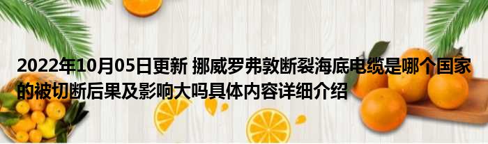 这两天关于2022年10月05日更新 挪威罗弗敦断裂海底电缆是哪个国家的被切断后果及影响大吗具体内容详细介绍这方面的信息是受到的大家的关