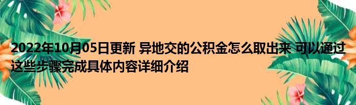 2022年10月05日更新 异地交的公积金怎么取出来 可以通过这些步骤完成具体内容详细介绍