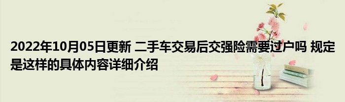 这两天关于2022年10月05日更新 二手车交易后交强险需要过户吗 规定是这样的具体内容详细介绍这方面的信息是受到的大家的关注度比较高,很多人也是想要明白2022年10月05日更新 二手车交易后交强险需要过户吗 规定是这样的具体内容详细介绍具体的详情,那么小编今天也是特地在网上收集了一些关于这方面的信息内容来分享给大家,大家感兴趣的话可以接着看下面的文章。