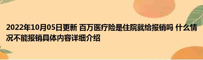 2022年10月05日更新 百万医疗险是住院就给报销吗 什么情况不能报销具体内容详细介绍