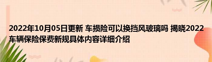 这两天关于2022年10月05日更新 车损险可以换挡风玻璃吗 揭晓2022车辆保险保费新规具体内容详细介绍这方面的信息是受到的大家的关注度比