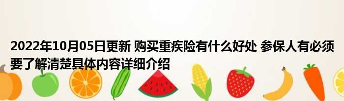 2022年10月05日更新 购买重疾险有什么好处 参保人有必须要了解清楚具体内容详细介绍