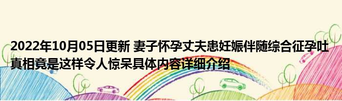 这两天关于2022年10月05日更新 妻子怀孕丈夫患妊娠伴随综合征孕吐 真相竟是这样令人惊呆具体内容详细介绍这方面的信息是受到的大家的关
