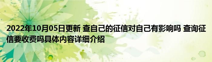 2022年10月05日更新 查自己的征信对自己有影响吗 查询征信要收费吗具体内容详细介绍