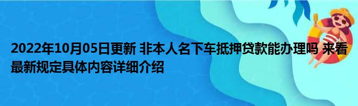 2022年10月05日更新 非本人名下车抵押贷款能办理吗 来看最新规定具体内容详细介绍