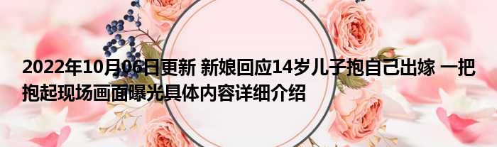 2022年10月06日更新 新娘回应14岁儿子抱自己出嫁 一把抱起现场画面曝光具体内容详细介绍