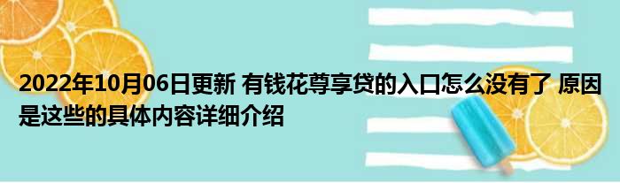 2022年10月06日更新 有钱花尊享贷的入口怎么没有了 原因是这些的具体内容详细介绍