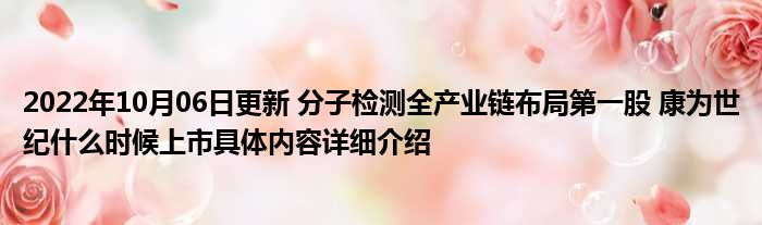 这两天关于2022年10月06日更新 分子检测全产业链布局第一股 康为世纪什么时候上市具体内容详细介绍这方面的信息是受到的大家的关注度比
