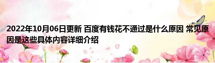 2022年10月06日更新 百度有钱花不通过是什么原因 常见原因是这些具体内容详细介绍
