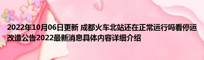 这两天关于2022年10月06日更新 成都火车北站还在正常运行吗看停运改造公告2022最新消息具体内容详细介绍这方面的信息是受到的大家的关注
