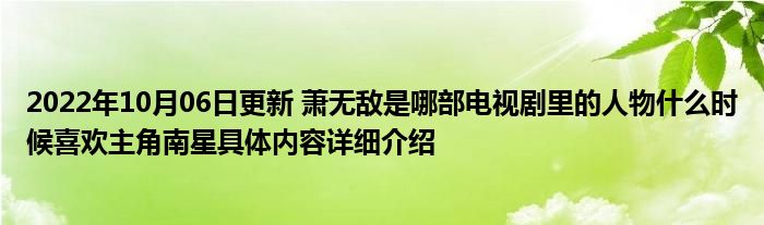 这两天关于2022年10月06日更新 萧无敌是哪部电视剧里的人物什么时候喜欢主角南星具体内容详细介绍这方面的信息是受到的大家的关注度比较