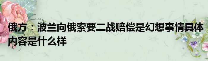 这两天关于俄方:波兰向俄索要二战赔偿是幻想事情具体内容是什么样这方面的信息是受到的大家的关注度比较高,很多人也是想要明白俄方:波兰向俄索要二战赔偿是幻想事情具体内容是什么样具体的详情,那么小编今天也是特地在网上收集了一些关于这方面的信息内容来分享给大家,大家感兴趣的话可以接着看下面的文章。
