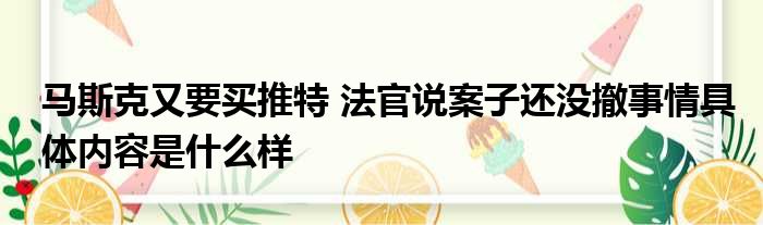 马斯克又要买推特 法官说案子还没撤事情具体内容是什么样
