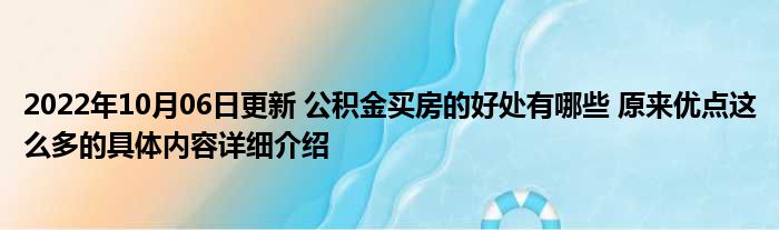 2022年10月06日更新 公积金买房的好处有哪些 原来优点这么多的具体内容详细介绍