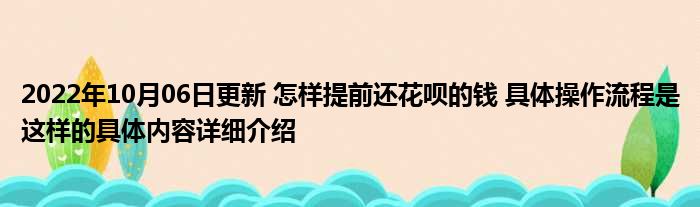 2022年10月06日更新 怎样提前还花呗的钱 具体操作流程是这样的具体内容详细介绍