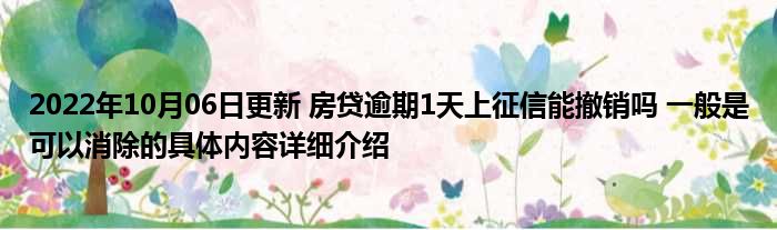 2022年10月06日更新 房贷逾期1天上征信能撤销吗 一般是可以消除的具体内容详细介绍
