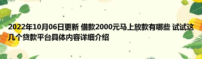 2022年10月06日更新 借款2000元马上放款有哪些 试试这几个贷款平台具体内容详细介绍