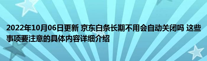 这两天关于2022年10月06日更新 京东白条长期不用会自动关闭吗 这些事项要注意的具体内容详细介绍这方面的信息是受到的大家的关注度比较