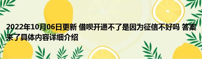 2022年10月06日更新 借呗开通不了是因为征信不好吗 答案来了具体内容详细介绍