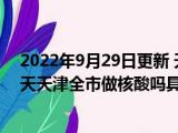 这两天关于2022年9月29日更新 天津9月30号还要全员筛查核酸吗 明天天津全市做核酸吗具体内容详细介绍这方面的信息是受到的大家的关注度 浏览全文>>