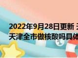 这两天关于2022年9月28日更新 天津9月28号全员做核酸大筛吗 明天天津全市做核酸吗具体内容详细介绍这方面的信息是受到的大家的关注度比 浏览全文>>