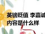 这两天关于英镑贬值 李嘉诚身家蒸发近100亿事情具体内容是什么样这方面的信息是受到的大家的关注度比较高,很多人也是想要明白英镑贬值 浏览全文>>