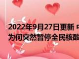 这两天关于2022年9月27日更新 中央最新指示停止不必要的核酸检测 为何突然暂停全民核酸检测具体内容详细介绍这方面的信息是受到的大家 浏览全文>>