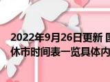 这两天关于2022年9月26日更新 国庆股市放假多少天 2022年A股国庆休市时间表一览具体内容详细介绍这方面的信息是受到的大家的关注度比较 浏览全文>>