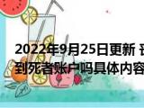 这两天关于2022年9月25日更新 丧葬费几个月打到卡里 丧葬费必须打到死者账户吗具体内容详细介绍这方面的信息是受到的大家的关注度比较 浏览全文>>