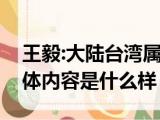 这两天关于王毅:大陆台湾属一个中国事实从未变事情具体内容是什么样这方面的信息是受到的大家的关注度比较高,很多人也是想要明白王毅:大 浏览全文>>