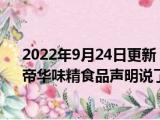 这两天关于2022年9月24日更新 公司回应“工人往黄豆酱里大小便”帝华味精食品声明说了什么具体内容详细介绍这方面的信息是受到的大家的 浏览全文>>