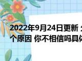 这两天关于2022年9月24日更新 久不联系你的人突然联系你一定有这个原因 你不相信吗具体内容详细介绍这方面的信息是受到的大家的关注度 浏览全文>>
